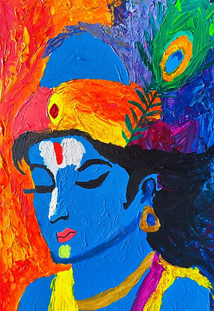 Obra original do artista Jean Ives, executada em acrílica sobre tela de forma espatulada, inspirada na figura de Krishna como símbolo de consciência, presença e transcendência. A composição utiliza cores vibrantes e contrastes intensos para representar o divino não como dogma, mas como estado interior.