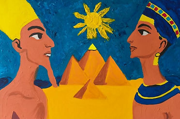 Obra original do artista Jean Ives, executada em acrílica sobre tela de forma espatulada, inspirado em Akhenaton e Nerfetiti no período Amarna. Esta obra captura essa essência, com o sol (Aton) pairando entre eles como uma bênção ou união divina.